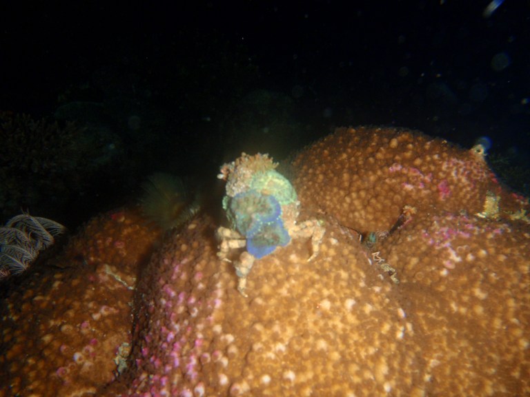 The housereef is interesting, I guess night dive is more interesting as more critters not visible during the day come out and display their uniqueness. Colorful nudis, hermit crab, cleaner shrimp, a cute squid, grouper, sleeping fish, colorful reefs, puffers again, critter that looks like a spider, and more… Our Saturday is indeed full, three wonderful dives all! 🙂