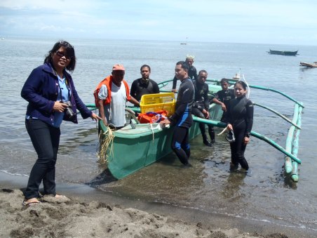 It was sunny in Samburon when we got there, and the folks have started already the day’s activities and obviously waiting for us. It was good to see Lemuel, Mar Brandy, Lolong and the rest of the team. I asked Lemuel for a briefing including the procedures, he explained to us also the updates, problems encountered and why it took them long for the transplantation. I was beaming listening to him, as he explained the diagram of the substrates submerged months ago.