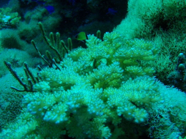 branching species in different shades and colors. But sadly, the crown of thorns had attacked this area and it was so frustrating to watch the corals turning grey and brown in death. What a disaster! In my assessment, about ¼ of the area has been devoured by the sea stars. I found this so alarming, and I was wondering if the local government or authorities have done something to save the environs. Even the dive operators and resorts around the islands have the responsibility to protect the marine resources, after all they’re making business from it! We ascend after an hour as Angel was getting low on air.