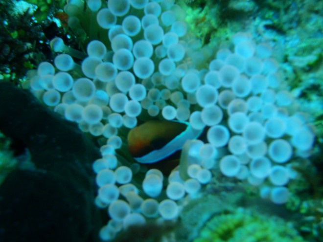 Our first stop was Agus Bay, we descend on a sandy area then getting deeper to a wall with reefs. It felt good to be back in the depths, so relaxing – indeed a second home. We drifted watching the scenery, there is really something peaceful with the fishes. There were damsels, fusiliers, variety of anthias, banners, variety of angels, some butterfly, lionfish and more. There were gorgonians I passed by trying to look closely for macros. But alas, I forgot to put on my contacts! 😛 I planned to have it when I got to the hotel but simply slip from my mind. There were bubble corals, tubes, some table but no sponges. I tried to touch something that looks like sea cucumber but turn out to be a hard coral. There were few nudis and pelagics were nowhere. After 48 mins with 27.8m as deepest we surfaced near Maribago Blue Waters, the boat waiting to pick us up.