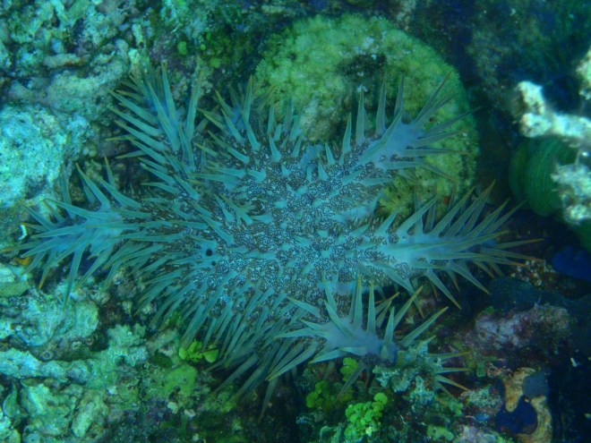 fusiliers, barrel sponge, damsels, colorful nudi, anemones, clown fish and crown of thorns! We did see lot of this sea stars and I was apalled, I was wondering if there were initiatives by the locals to protect the marine environment from this menace. We ascend after 46 minutes having our deepest at 33 metres.
