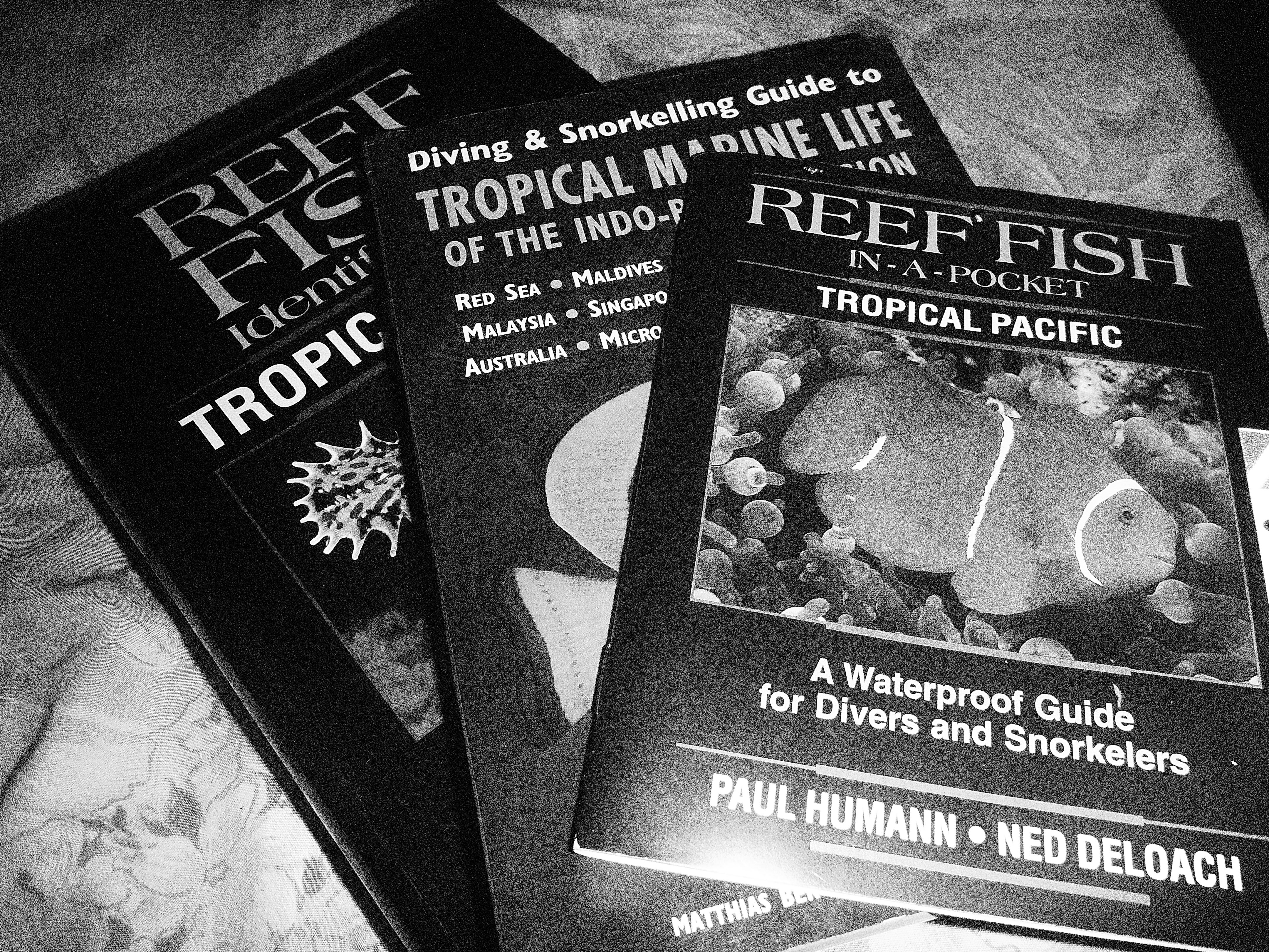 Being an avid reader I love books and I must admit it’s one of my weakness, needless to say my bookshelf is filled with an assortment of paperbacks or hard bounds I took fancy either for references or pleasure reading. Recently however, I made addition to my collections which I think is inevitable as I got deeper in my love for the marine life. I need to learn and know more for this grand quest of life beyond the depths.