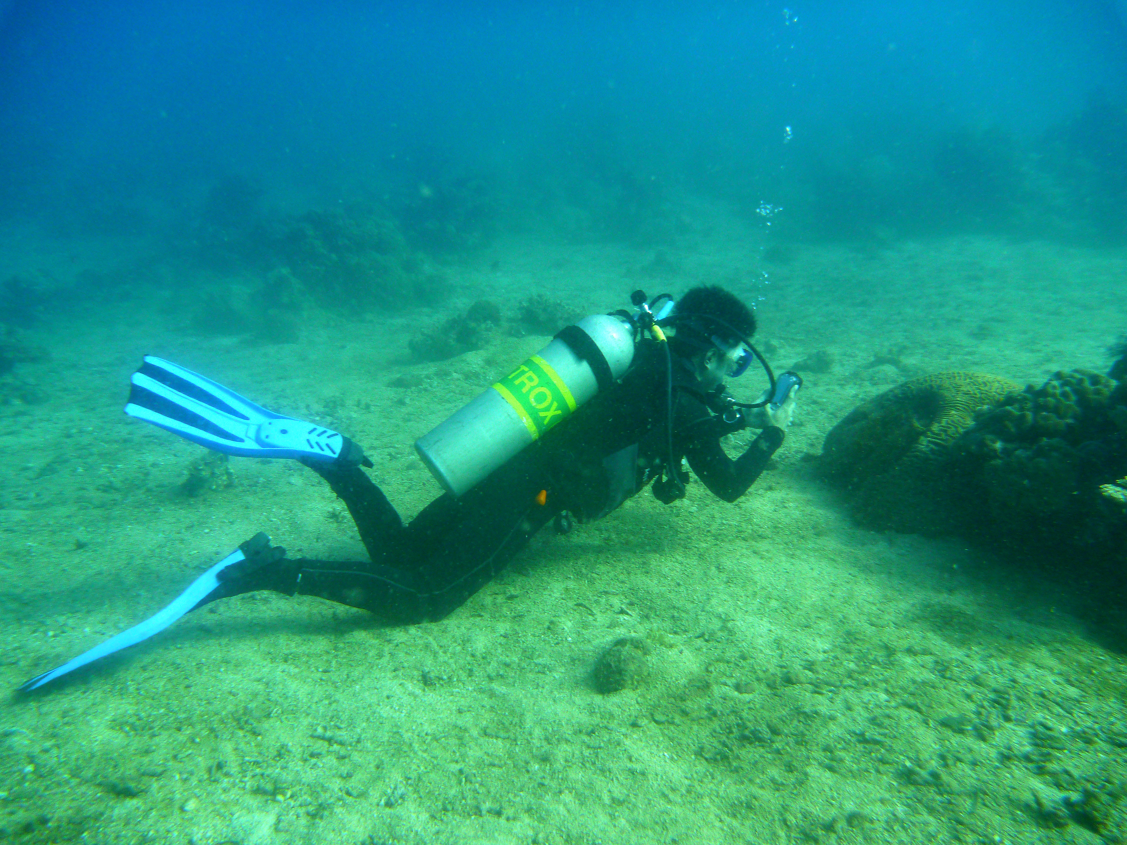 After our surface interval, we sailed from Mantangale to Lapinig Island, the islet in front of Balingoan Port. It looks dull and boring on the surface, but what’s underwater is a different story. It’s an action- packed world down there! Not minding the mild current, we gradually descend on a sandy slope hoping to see manta rays. There are reported sightings of manta rays in the site although not regular. It wasn’t our lucky day though, as no manta ray showed up. But the usual reef and macro species such as striped fish, trumpet fish, nudis, bristle worms, and others that I don’t know by name, made the dive an awesome one. Soft and hard corals, sea fans, feather stars and sponges also added color to the scenery. Sadly, some trashes scattered around the place due to its proximity to the port and residential area. We ended up fishing out trashes, turning our dive into a clean-up drive!