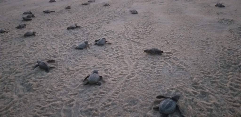 Our late-night beach patrols allowed me to encounter the Palawan badgers, known in local dialect as “Pantot”. We were walking on the beach in darkness when from the corner of my eye I saw small eye pairs glowing in the dark (like penlights) a little distance from the shores and the foul smell in the air. The badgers only go out at night for food hunt, I guess. They are nocturnal and wandered around the shores, we saw footprints going to the waters, I guess they are having marine critters for food. The smell though was just so unbearable. The Palawan tree squirrels, locally known as “Bising” are also common in the wild, I saw few while on the road, scrambling as we passed by. They look exactly as squirrels but smaller and very timid. There are wild ducks too that I saw swimming not really far from our station for hatchery checks, they come in group fishing for food but too far away to get some photos. 😊And yes, we saw monkeys crossing the road when we drive to another barangay for some data gathering. Those were what I encountered during my brief stay not to mention the Olive Ridley sea turtles that nests along the coastlines of the town.