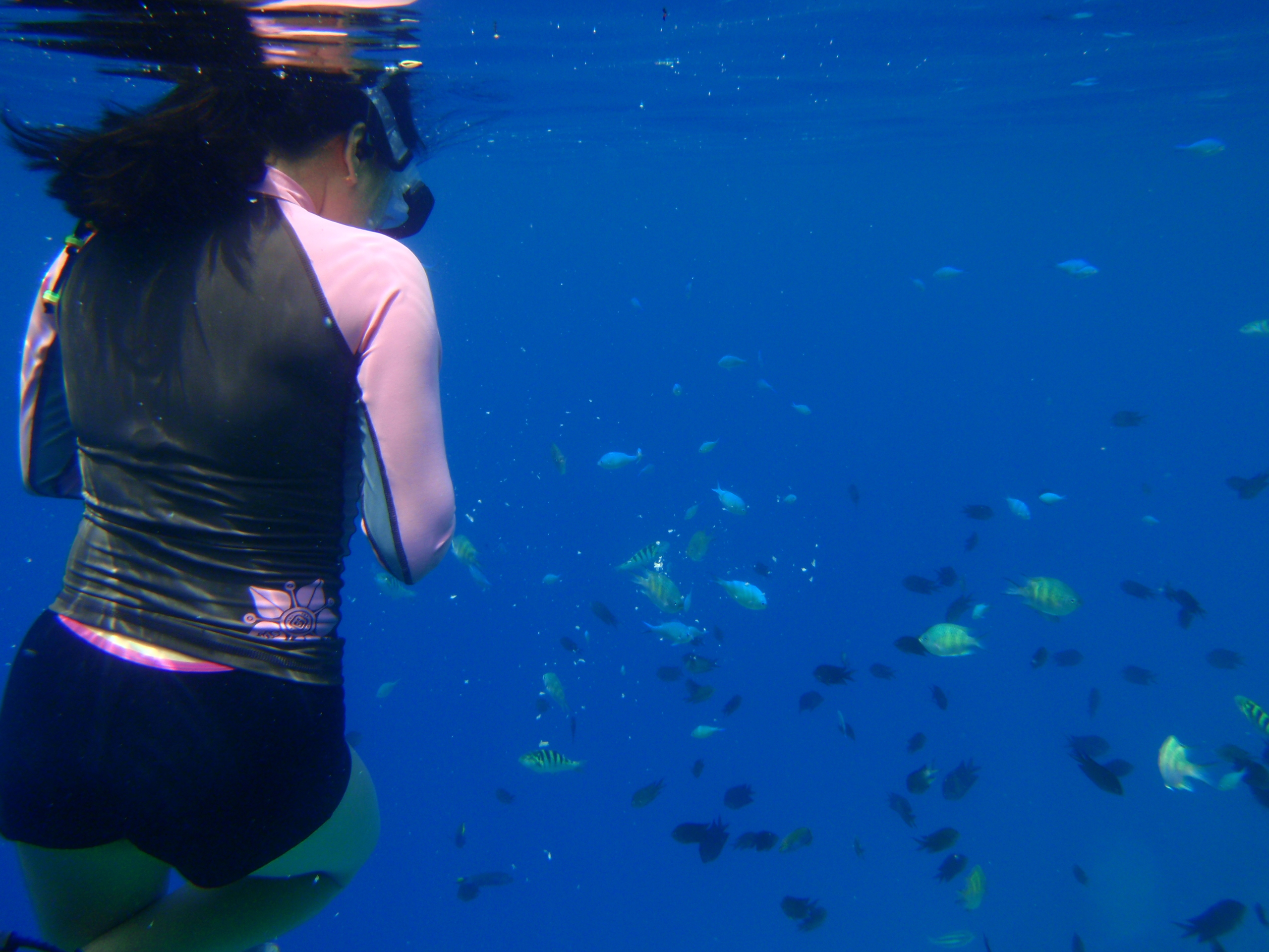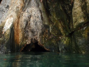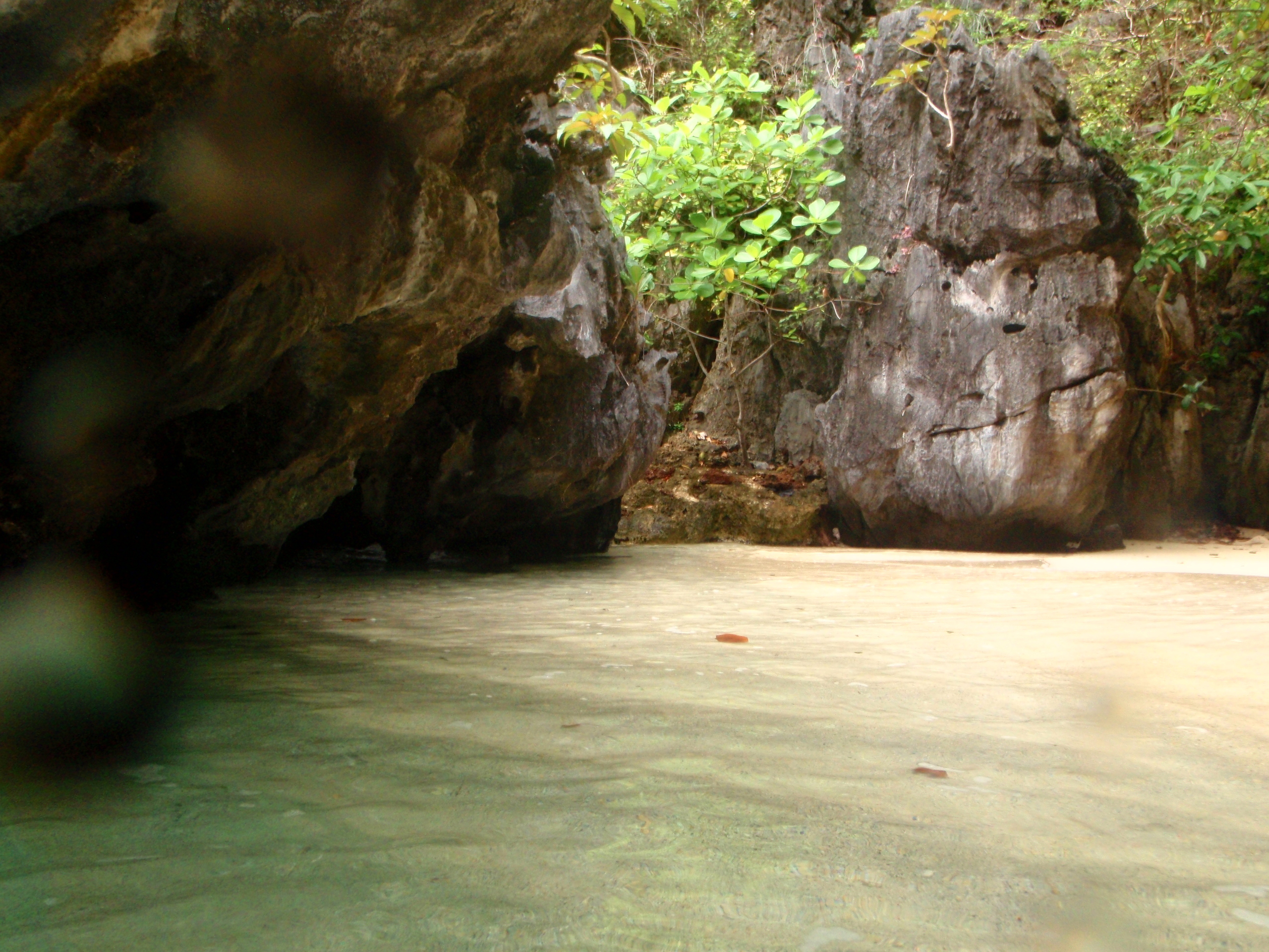 I was picked up the next morning for an island hopping I booked last minute, the beach front was already full of tourists waiting for their boats. Our first challenge was getting into the boat, wade the waist-deep waters with the surf and hurriedly climb up the gangplank before the big waves could throw you down. Just enough adrenaline to start the adventure! :) The waters was bit rough, so sailing to the islands was not without crashing waves! The good thing was I was joined with matured people, mostly were residing or working abroad. Thankfully, not with shrieking or shouting young ones! :) I kept close to our tour guide as I used to do – they always can give lot of stories, tips, even open up their own living. John was a good-hearted fellow and he speaks Visayan, to my delight! He is a diver too and I told him also my diving trips in El Nido with the Palawan Divers, and was glad to know that some DMs I knew are still around in the town including Yoshi San. I was eyeing of the caves so I chose Tour B, it was sunny but the rough waters didn’t help. During the hopping I keep close to that friendly Ilocano couple who were Guam residents. The waves slowed down our boat, there was a need to shorten the cruise too as the winds might get fiercer in the afternoon. In the end, we only explored the Codugnon Cave which was bit challenging, swimming to the cliff and crawling trough that small entrance. That was tough especially for the oldies but it went well for all of us. We anchored at the shallows of Snake Island, the sand bar strip wasn’t there due to high tide. We waded the waters and trek the small hill getting a good view of the surroundings, in no time we waded back to the boat when the waters getting deep due to high tide. Our group settled there and had a leisure, long lunch surrounded by waters!