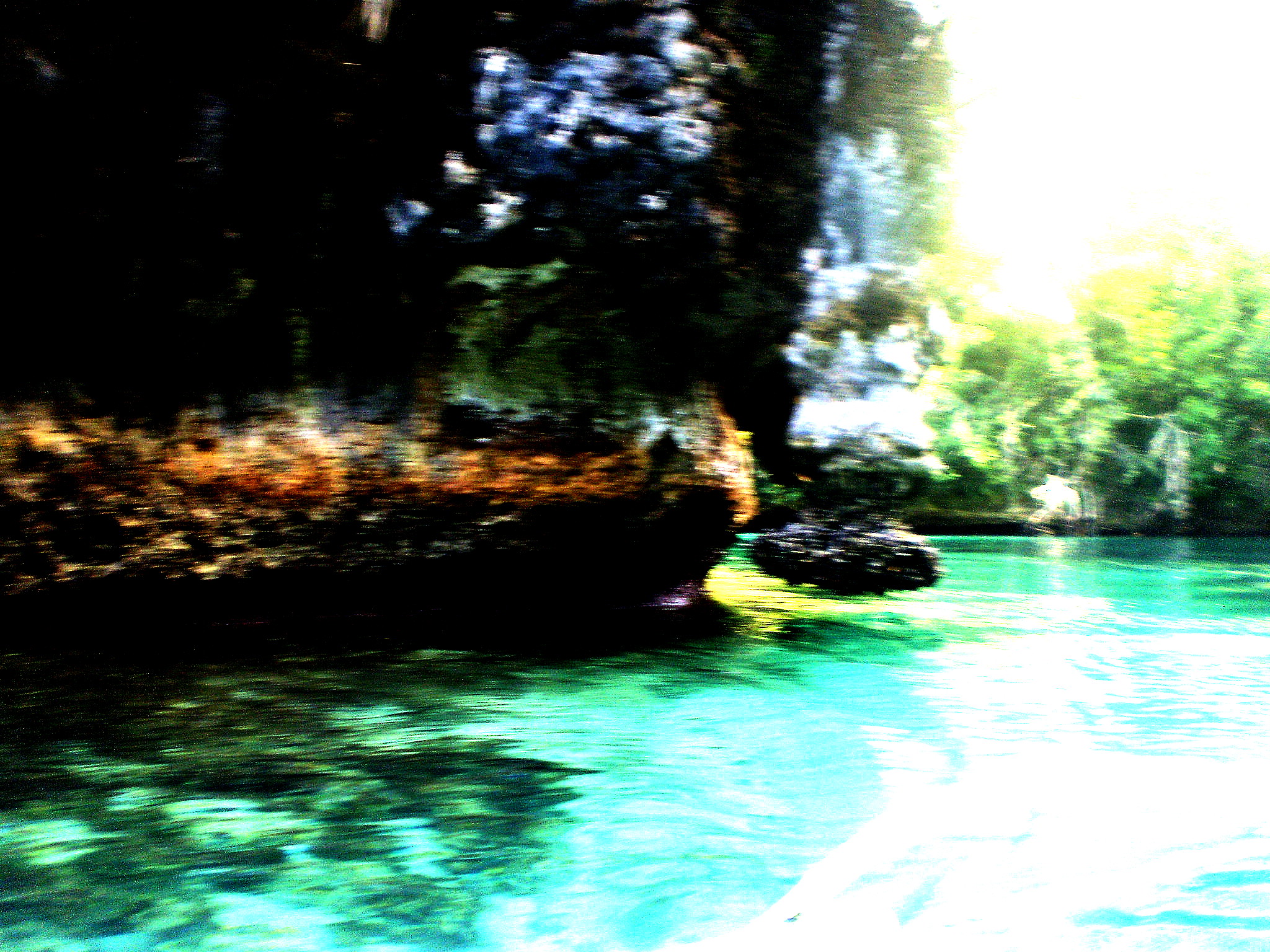 We rushed to the information center for a courtesy hi with DH, somehow I’m grateful with all the necessary arrangements he made for my trip, even how short the notice was. So we started early taking advantage of the low tide, I wanted to revisit the hidden charms of my paradise. I always feel that familiar rush of blood flow when entering the cove, so mysterious it felt like I’m transported into another world. We went around and got first into Hagukan Cave, swam inside, stayed for awhile and mingle with other guests. We then proceed to the challenging Magkakaub Cave, walk inside, view the formations and the fruit bats up, then went rock climbing for the exit. Well, we got at the ramp ready for the plunge but alas I still have to gather much courage for the jump 😛 It’s my fourth time and yet my spirit needed some urging. It felt so free having the big leap, the big splash and the water rush felt so good! 🙂 Navigating around the cove watching limestone cliffs covered with greens, clear waters and blue skies is like paradise to me.