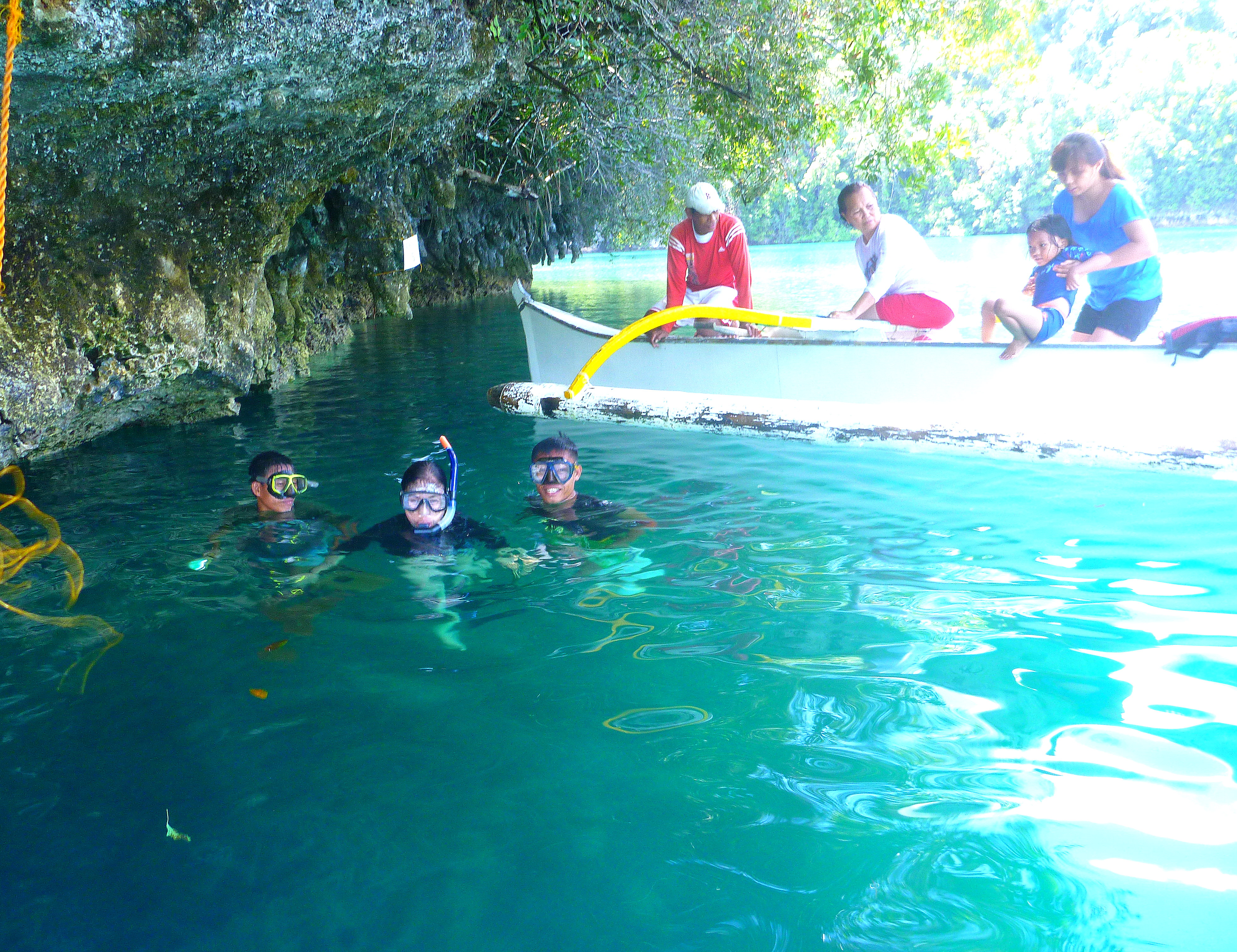 Our first adventure is exploring the Tojoman Lake – lagoon filled with friendly stingless jellyfish. We were early so the lake was all to ourselves. We got down to swim and snorkel, playing with the brownish jelly fish – in different sizes – thousands & thousands of them! Angel was just too excited swimming with them. I swim with them looking at them closely – they’re pulsating as if breathing or maybe shouting! 🙂 The boatman motioned for our return but I still wanted to stay, Angel gave me another 15 minutes… Swimming with the jellyfish is my favorite in Sohoton!