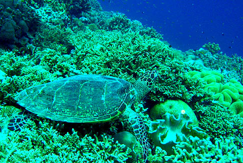 Sea Turtle among the colorful corals